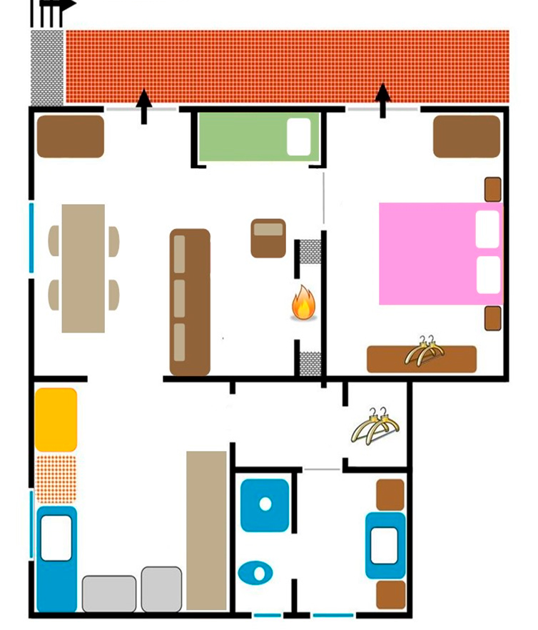 • Un grand espace jour avec côté repas et côté salon accueillant deux lits superposés en alcôve de 80 sur 200 chacun.